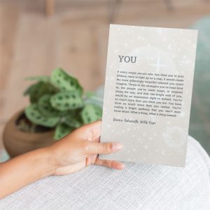 Reads: “Youier. Imagine if the sun refused to shine because the moon was shinier if streams ceased to flow